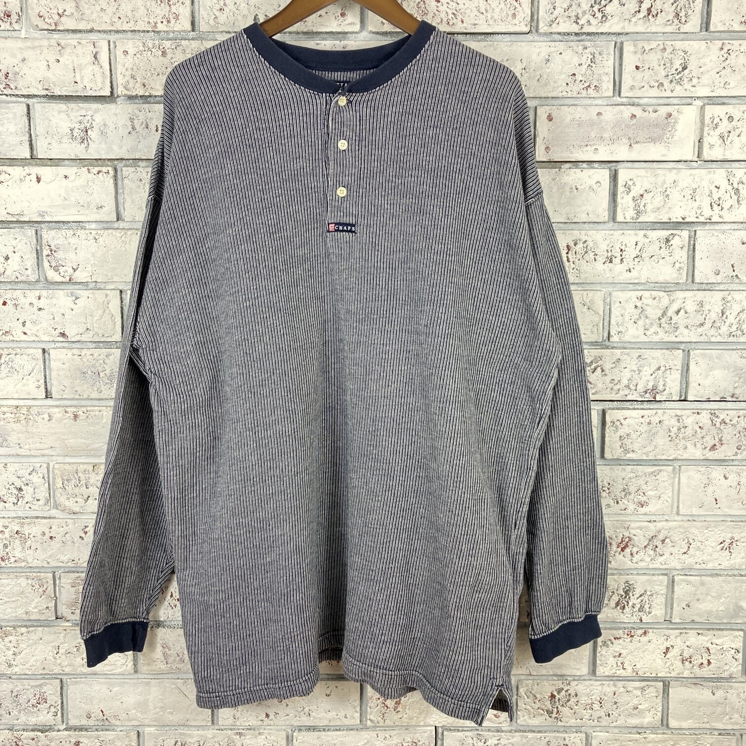 CHAPS RALPH LAUREN ストライプ ヘンリーネック ロングスリーブ Tシャツ L/S T-SHIRTS ネイビー