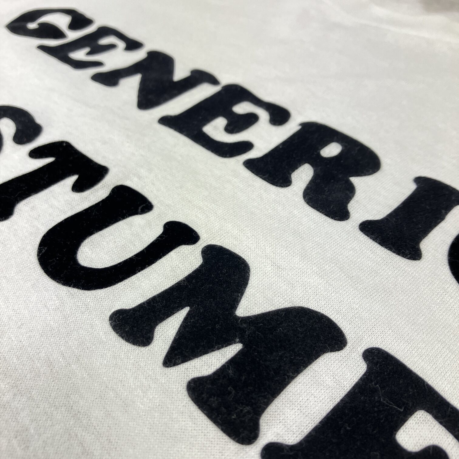 フェルトの様な独特な生地感デザインのフロッキープリントTシャツ。